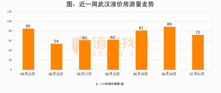 根据诸葛找房数据显示,武汉24小时涨价房源量为72套,较06月30日减少17套,环比下降19.1%。与此同时,涨价房源占比小幅回落,对于购房者来说是一个入市窗口期,购房者可抓住时机入市。
