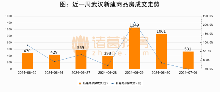 【武汉成交日报】07月01日新房成交531套;涨价房源72套