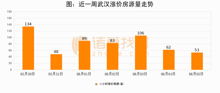 根据诸葛找房数据显示,武汉24小时涨价房源量为53套,较06月04日减少9套,环比下降14.5%。与此同时,涨价房源占比小幅回落,对于购房者来说是一个入市窗口期,购房者可抓住时机入市。