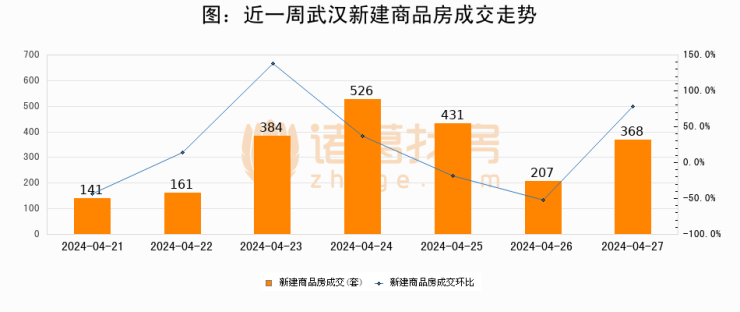 【武汉成交日报】04月27日新房成交368套;涨价房源96套