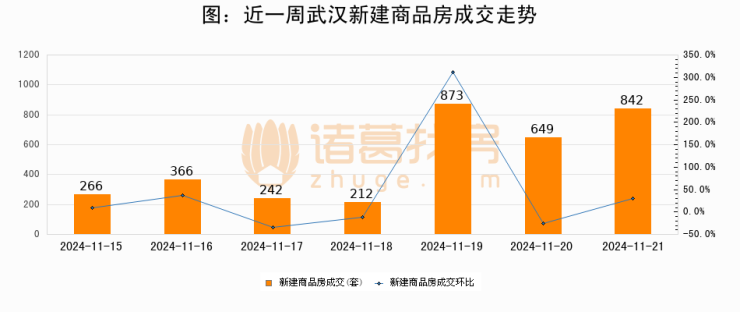 【武汉成交日报】11月21日新房成交842套;涨价房源3套