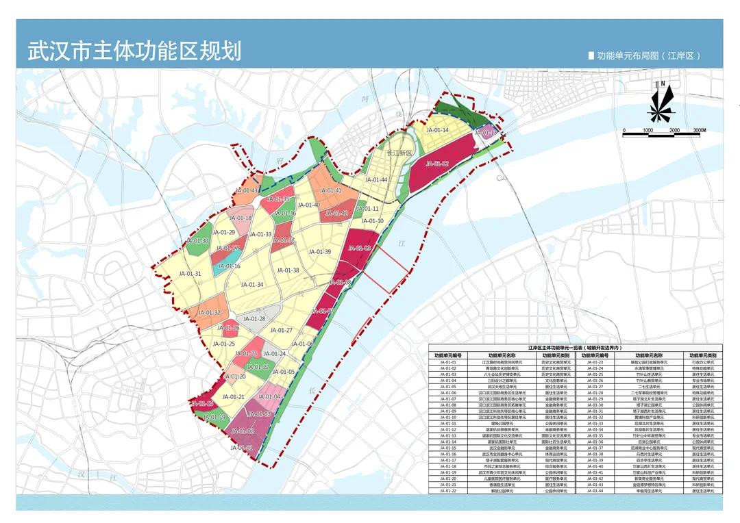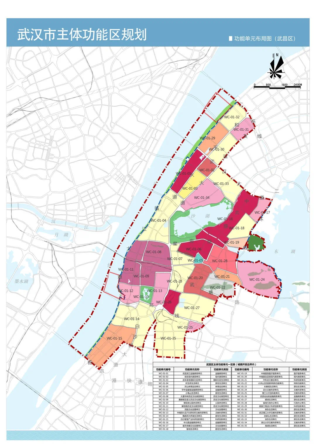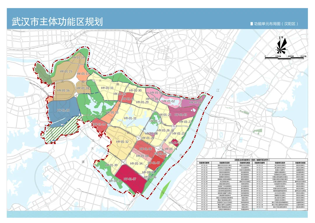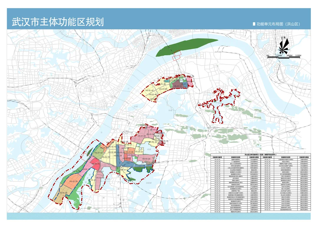 “主体功能区片”按照承载职能重要性,分为重点和一般区片。如汉口滨江、武昌滨江、龟北片等承担市级及以上服务职能的为重点区片;承担区级及以下服务职能的为一般区片。“主体功能单元”是构成功能区片的基本单元,既是招商引资和项目建设的实施单元,也是规划编制、实施评估的管理单元。