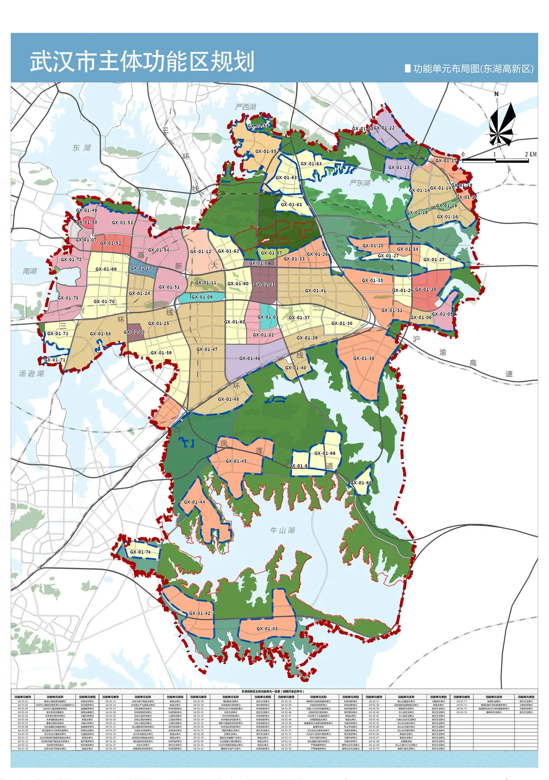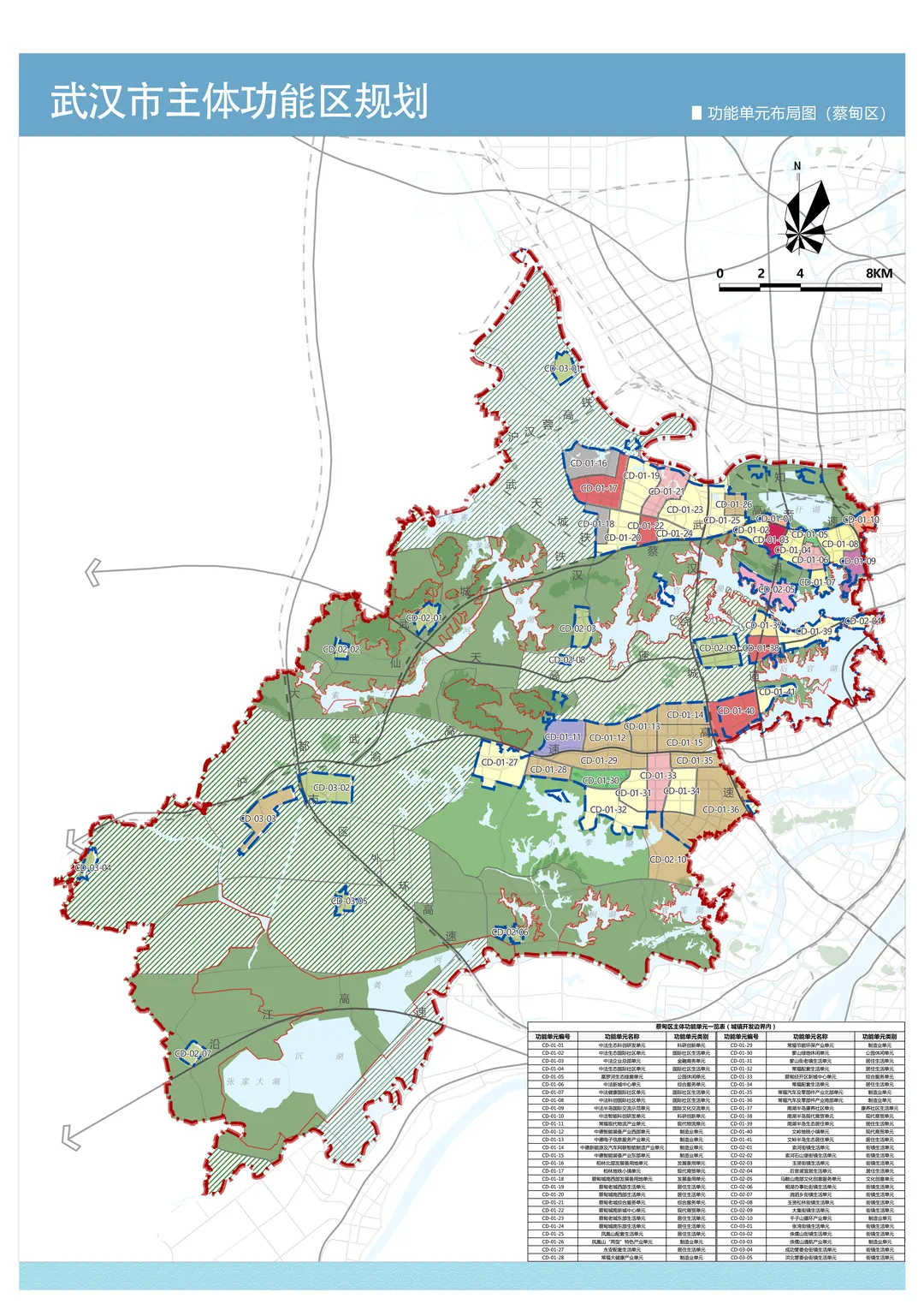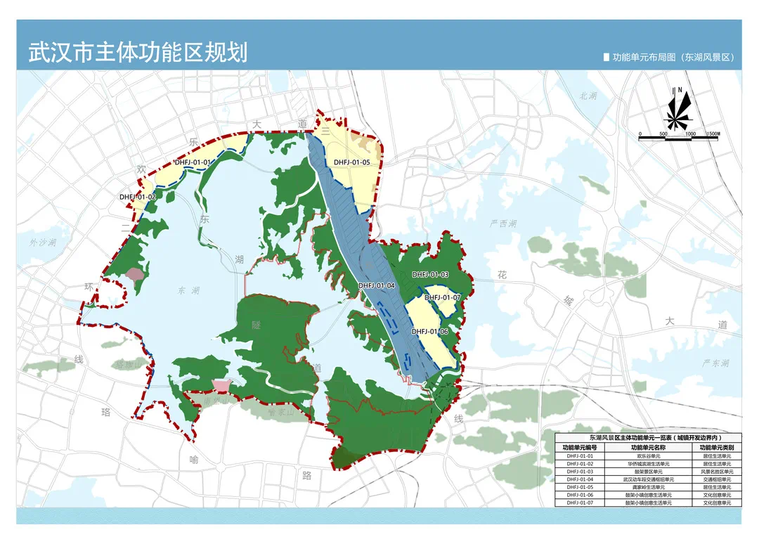 “主体功能区片”按照承载职能重要性,分为重点和一般区片。如汉口滨江、武昌滨江、龟北片等承担市级及以上服务职能的为重点区片;承担区级及以下服务职能的为一般区片。“主体功能单元”是构成功能区片的基本单元,既是招商引资和项目建设的实施单元,也是规划编制、实施评估的管理单元。
