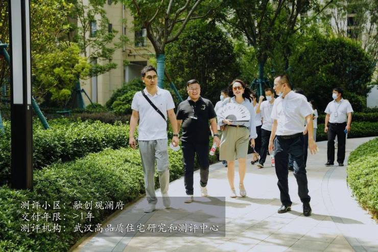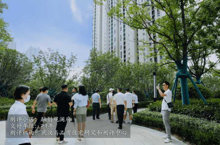 测评中心第二站来到交付一年多位于东西湖的融创观澜府,测评人员同样首先惊艳于高品质且辨识性强的外立面以及公园般的园林景观。