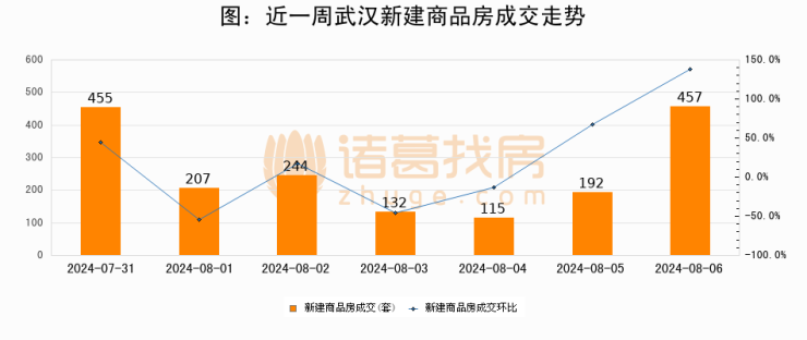 【武汉成交日报】08月06日新房成交457套;涨价房源39套