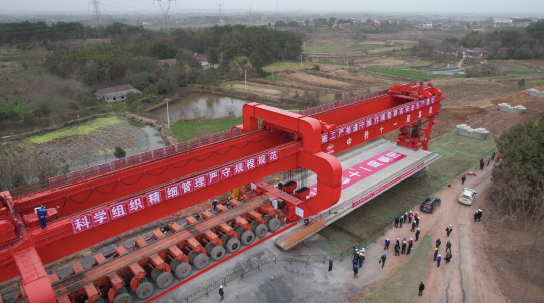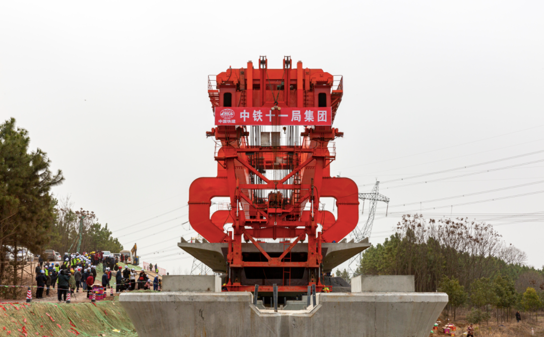 3月1日10时18分,在荆门市团林铺镇何场村,荆荆高铁1标施工现场,荆荆高铁1标首榀箱梁成功架设,标志着该条线路全线正式进入架梁高峰,为荆荆高铁如期建成通车,打下了坚实基础。
