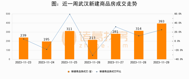 【武汉成交日报】11月29日新房成交393套;涨价房源61套