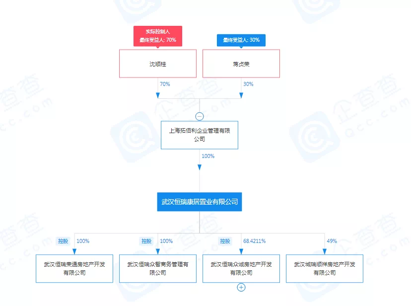 但是,武汉恒瑞众诚房地产开发有限公司另外两位自然人股东——沈顺桂和蒋贞荣,是此前该公司大股东武汉恒瑞康居置业有限公司的实际控股人。