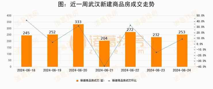 【武汉成交日报】06月24日新房成交253套;涨价房源60套