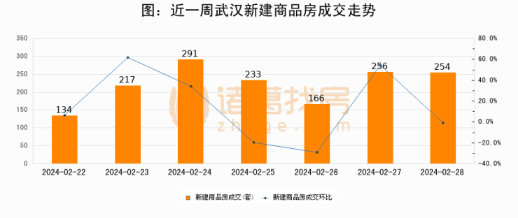 【武汉成交日报】02月28日新房成交254套;涨价房源122套