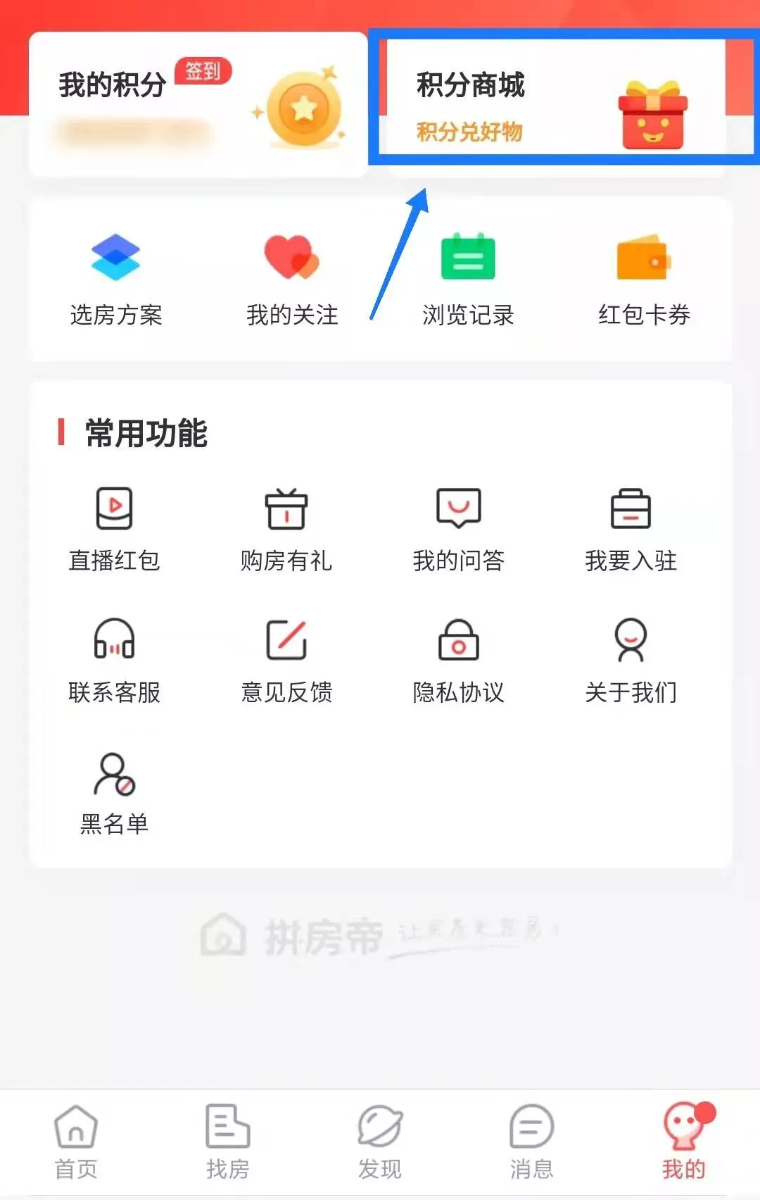 拼房帝积分商城入口位置:我的-积分商城奖项