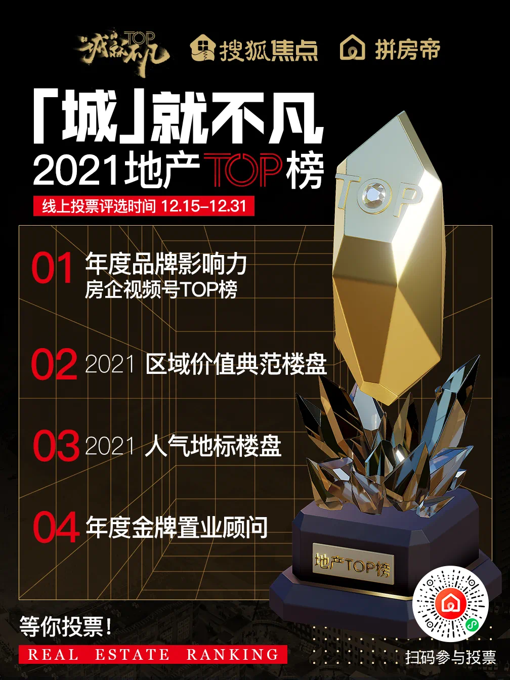 致敬时代行业精神、优秀房企、楼盘,同时致谢为大家提供购房服务的一线置业顾问,搜狐焦点今天邀请大家参与“2021年地产TOP榜大型评选活动”。