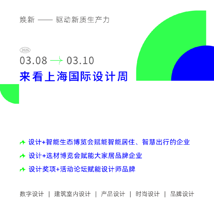 本届设计周以 「焕新」驱动新质生产力为核心主题,秉持「放飞创意,让生活更美好」的理念,通过三大特色展览板块—— 「设计+选材博览会」、「设计+智能生态博览会」 以及 「未来生活方式体验展」 ,全方位展现设计创新的无限可能。同时,设计奖项评选与高端活动论坛也将同期举办,为行业搭建交流与合作的桥梁。