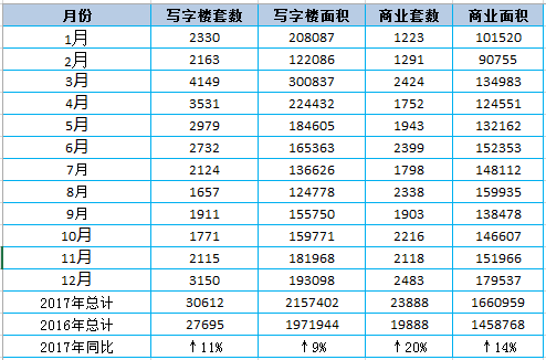 表:2017年各月写字楼和商业成交量