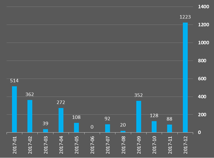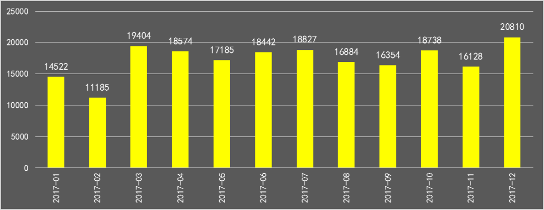 写字楼全年成交了30612套,同比2016年增长11%。成交面积215.74万平方米,相当于平均每月售出1.8栋超高层写字楼(以每层2000平方米,总楼层50层为样板)。