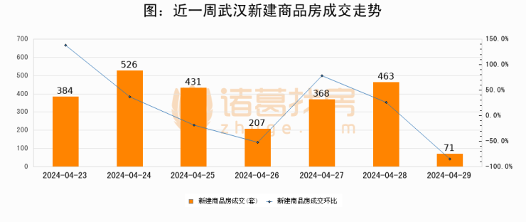 【武汉成交日报】04月29日新房成交71套;涨价房源127套