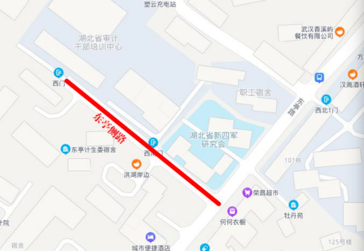 位于武昌区水果湖街道辖区,地处省卫生健康科技服务中心与省审计干部培训中心之间。西北起湖北省审计干部培训中心西门,东南至东亭路止,全长约160米,宽5米。因该路垂直于东亭路的小路,故名。
