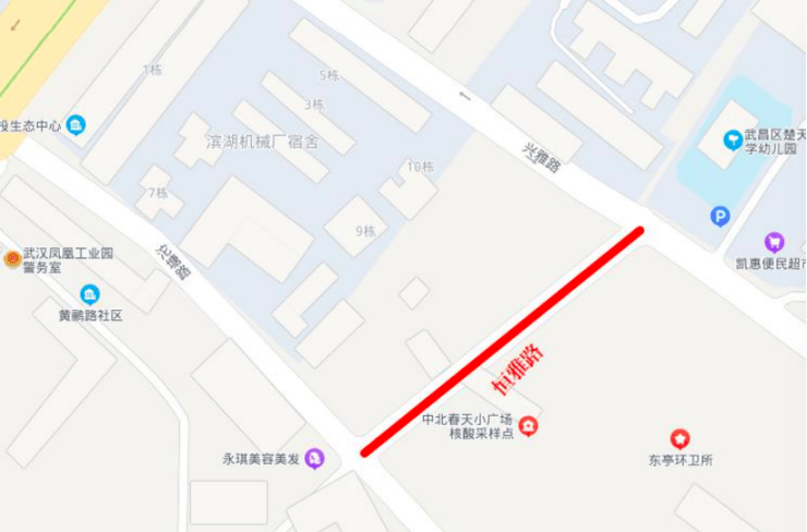 位于武昌区水果湖街道辖区,地处亘星苑还建房与东亭村还建房之间。西南起沱塘路,东北至兴雅路止,全长约150米,宽8米。因该路段垂直于兴雅路,取“雅”字组词命名为恒雅路。