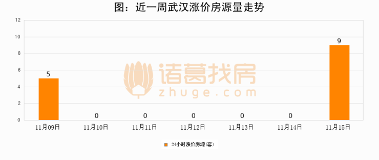 根据诸葛找房数据显示,武汉24小时涨价房源量为9套,较11月14日增加9套,环比上涨0%。与此同时,涨价房源占比小幅扩大,业主信心有所提升。