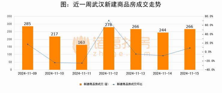 【武汉成交日报】11月15日新房成交266套;涨价房源9套