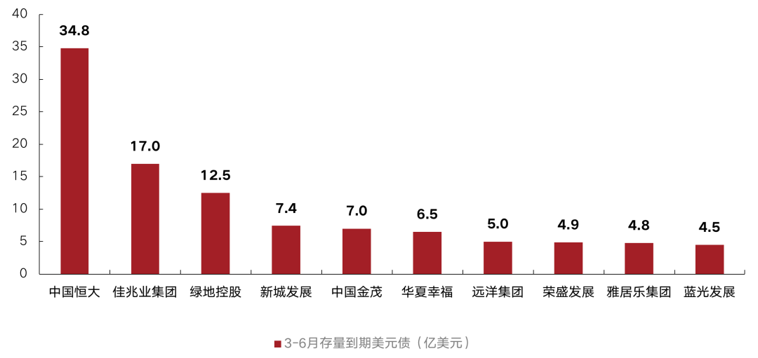 图:2022年3-6月美元债存量到期债规模较大前十房企
