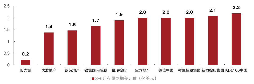 图:2022年3-6月美元债存量到期债规模最小前十房企