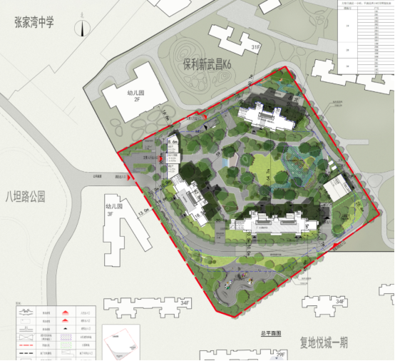 该地块被保利新武昌、复地悦城一期、八坦路公园合围,体量较小,仅3栋住宅楼,周边住宅均已交付,居住氛围成熟。