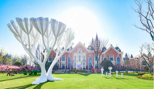 记者在现场看到,在蓝天白云辉映下,示范区整体呈现一片恢宏壮丽的景象。气势宏伟的50万㎡实景展示区屹立在园区,精致典雅的园林令人流连忘返,乐趣满满的儿童互动器材穿插其中,超级鲸鱼岛、卡通塑像……五彩斑斓宛如进入充满童趣的梦幻之地,吸引了众多市民前来打卡,迅速成为武汉新晋网红打卡地。