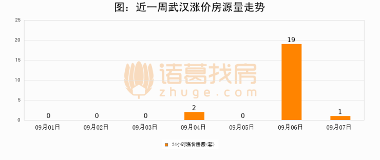根据诸葛找房数据显示,武汉24小时涨价房源量为1套,较09月06日减少18套,环比下降94.7%。与此同时,涨价房源占比小幅回落,对于购房者来说是一个入市窗口期,购房者可抓住时机入市。