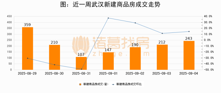 根据武汉市住房保障和房屋管理局数据显示,2025年09月04日武汉新建商品房成交243套,较昨日增加31套,环比上涨14.6%