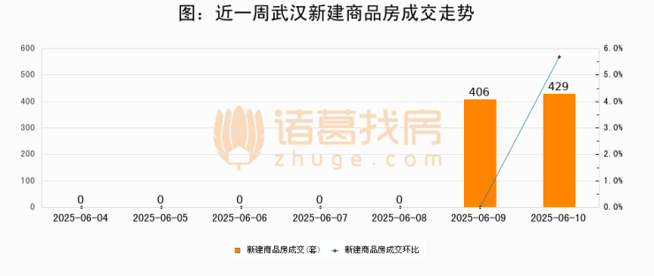 根据武汉市住房保障和房屋管理局数据显示,2025年06月10日武汉新建商品房成交429套,较昨日增加23套,环比上涨5.7%