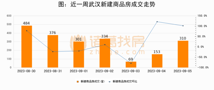 【武汉成交日报】09月05日新房成交310套;涨价房源291套
