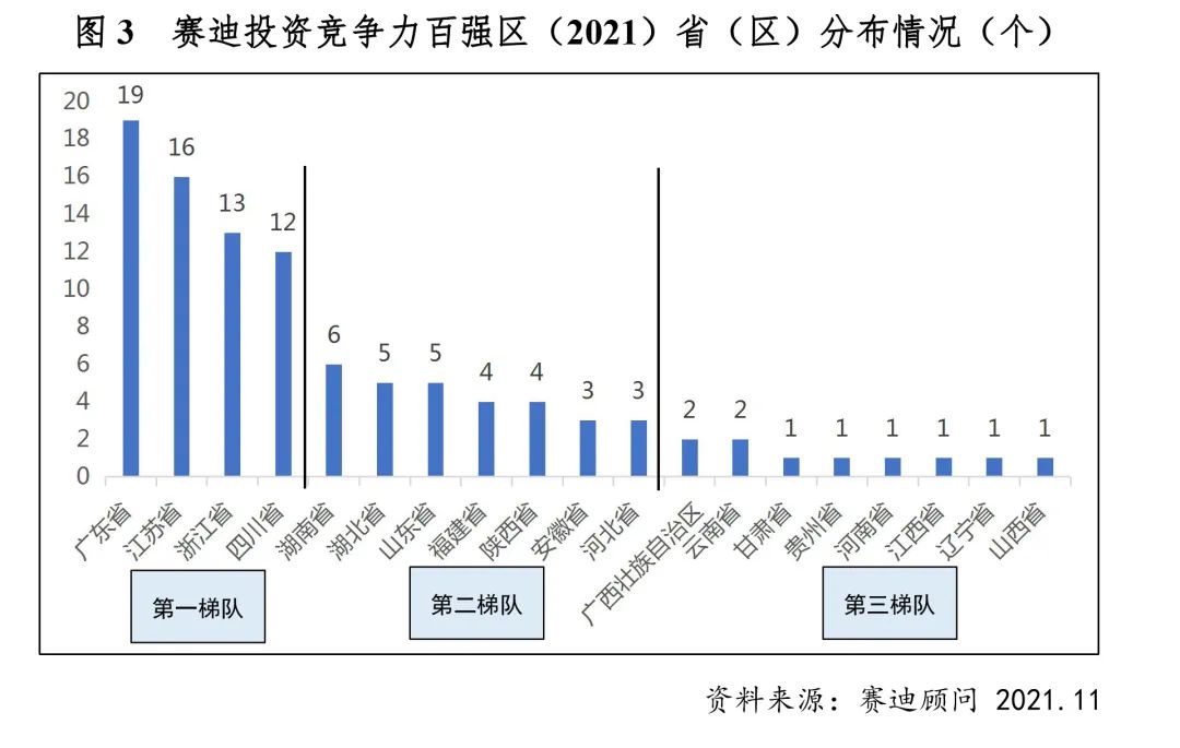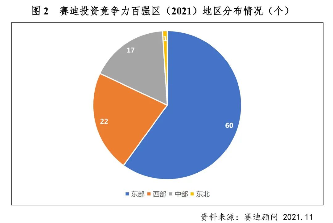 2021年百强区按省域、城市分布情况。来源:赛迪顾问