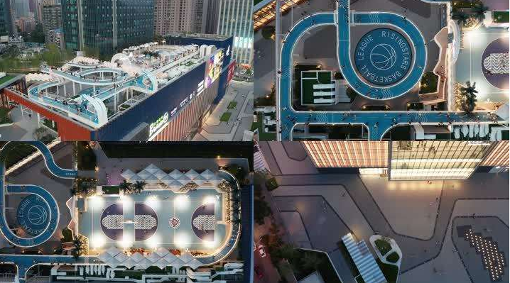 除了滑冰,还可去日落天台拍照。武汉江宸天街地处汉口中心腹地,重视人与空间的交互,提取了“CITY-POP”文化中的城市度假生活和享乐主义经典的视觉形象,将浪花、阳伞、棕榈树、夕阳融入景观设计之中,强化场景氛围的营造。日落海滩篮球公园、长浪跑道、超现实冲浪宇航员、落日漫步道……亦是游玩好去处。