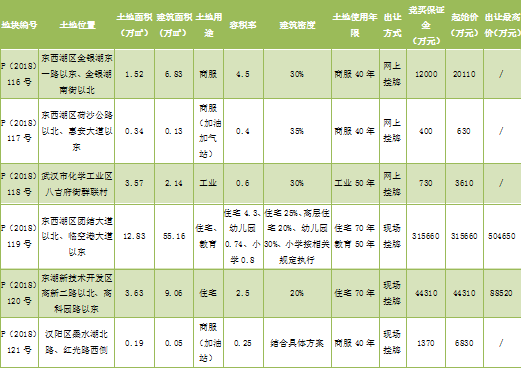 上两周(9.24-10.7)武汉招拍挂市场共推出6宗地块,合计供应建面约73.38万方,合计起拍金额约39.12亿元。其中,2宗为含住宅用地,3宗为商服用地,1宗为工业用地。2宗住宅类用地分别位于东西湖吴家山板块和东湖高新区光谷东板块。