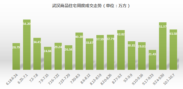 上周,武汉吉家成交量先升后降,节前成交周期创近期新高;十一黄金周新建商品住宅成交面积同比上涨22.28%,开盘整体去化90%。