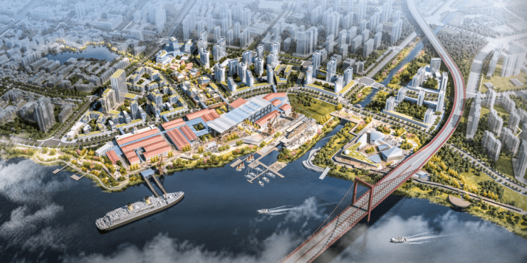 武船地块是中国工业脊梁的重要工业遗存,将引入地标性文化艺术项目,创造全天候的活力场所与国际化的融合住区。