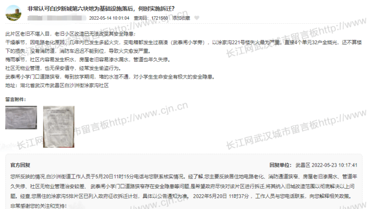 还有部分拆迁、改造地点回复信息
