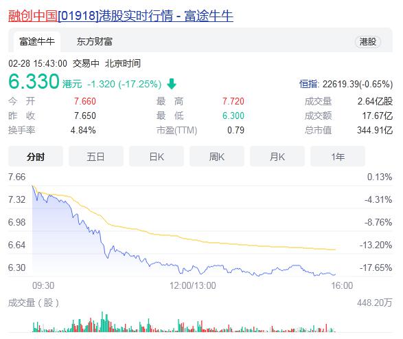 今日午盘,融创股价突然暴跌 17%!融创怎么了?