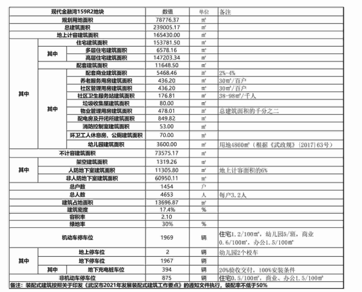 其中159R2地块为居住用地,用地面积78776.37平方米,计容建筑面积165430平方米,规划14栋18-27层住宅(含配套底商及公建配套),12栋4层住宅,5栋1-2层配电房,1栋3层幼儿园,整体地下一层局部二层,地下室机动车位1967辆。