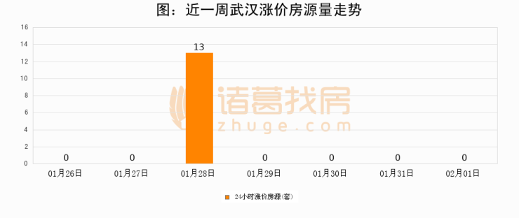 根据诸葛找房数据显示,武汉24小时涨价房源量为0套,较01月31日持平。