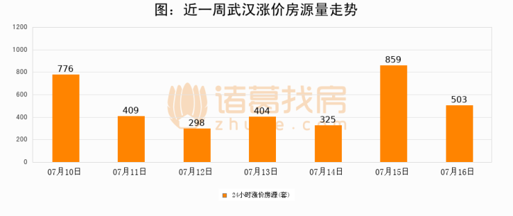 根据诸葛找房数据显示,武汉24小时涨价房源量为503套,较07月15日减少356套,环比下降41.4%。与此同时,涨价房源占比小幅回落,对于购房者来说是一个入市窗口期,购房者可抓住时机入市。