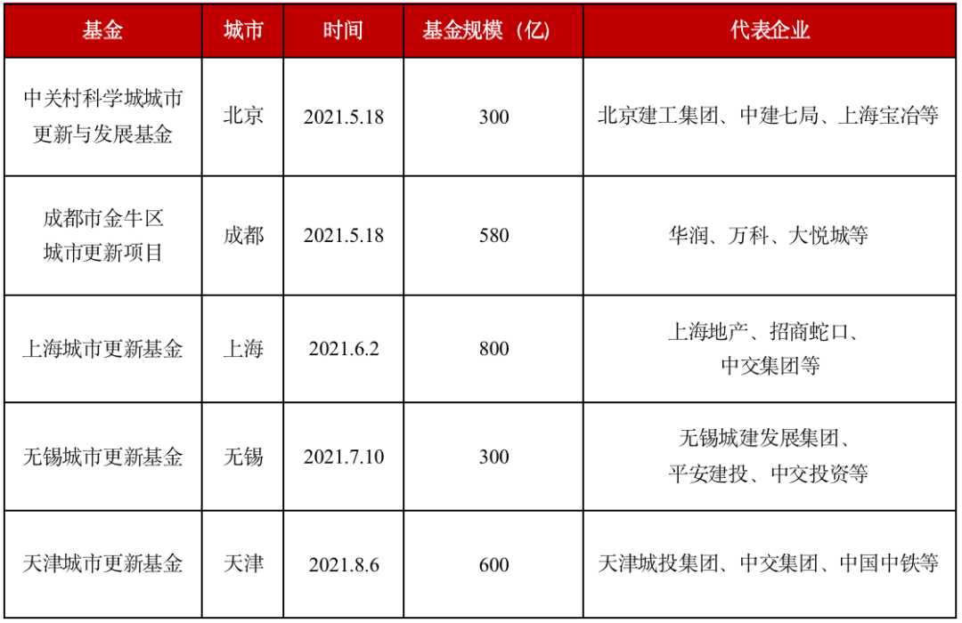 随着各地土地市场由增量时代转向存量时代,加上“十四五”规划明确提出实施城市更新行动,城市更新成为各地政府与企业的工作重点。随着各地城市更新热潮不断涌动,相关的配套政策与资金福利都在不断落实中。近段时间以来,上海、天津、无锡等地相继成立以地方国企牵头的城市更新基金。