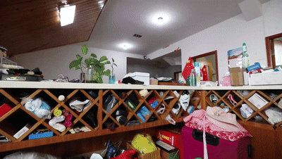 改造前,由于家中的斜角过多,常规衣柜根本无法安装,沙发、桌子、椅子、床上…衣物堆放的随处可见。