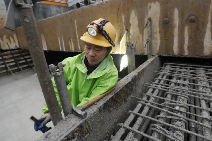 中铁五局项目负责人介绍,盖板底部距车站顶板仅1.2米,该段顶板作业空间小,在混凝土浇筑过程中,泵车无法进入施工区域,因此采用了地泵 天泵接力浇筑的方式解决混凝土浇筑难题。为确保浇筑质量,严格各班组工序之间的自检、互检质量要求,坚持“不渗不漏、内实外美”为目标导向,控制好每道工序,浇筑好每一板混凝土,打造高品质实体工程。