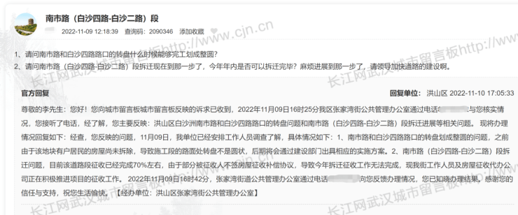问:请问南市路(白沙四路-白沙二路)段拆迁现在到那一步了,今年年内是否可以拆迁完毕?