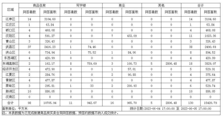 【武汉成交日报】06月05日新建商品住房成交98套