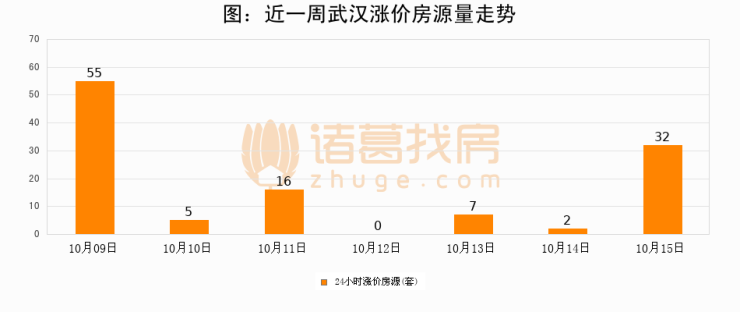 根据诸葛找房数据显示,武汉24小时涨价房源量为32套,较10月14日增加30套,环比上涨1500%。与此同时,涨价房源占比小幅扩大,业主信心有所提升。