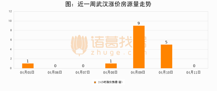 根据诸葛找房数据显示,武汉24小时涨价房源量为0套,较04月10日减少5套,环比下降100%。与此同时,涨价房源占比小幅回落,对于购房者来说是一个入市窗口期,购房者可抓住时机入市。