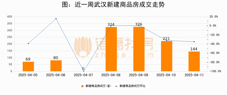 根据武汉市住房保障和房屋管理局数据显示,2025年04月11日武汉新建商品房成交144套,较昨日减少77套,环比下降34.8%。近一周武汉新建商品房日均成交167套。04月11日单日成交144套,低于近一周平均水平13.8%。